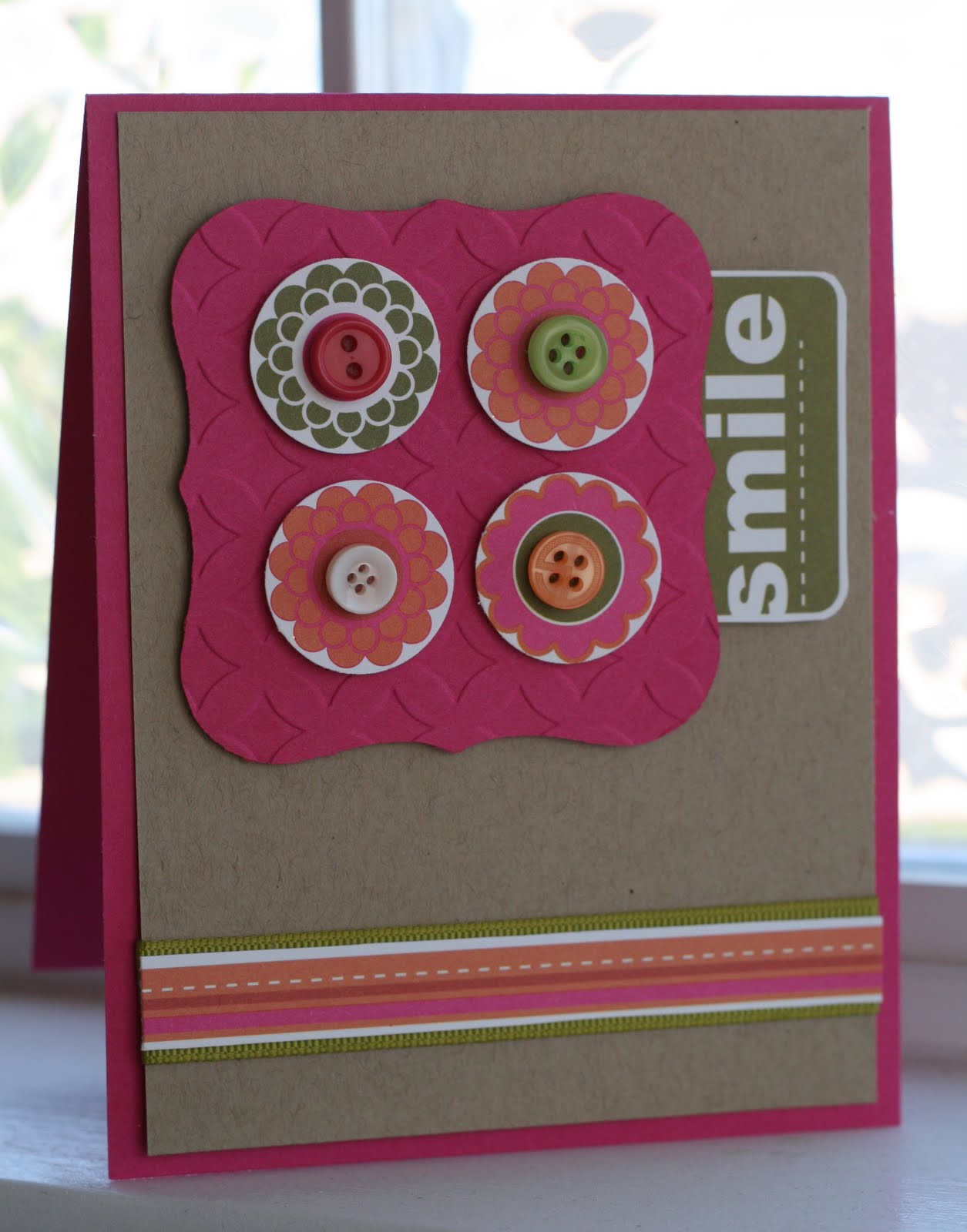 Misc. Lime & Emerald Grosgrain Ribbon, Fiskars Border Punch, Copic Markers, Marvy punch and Spellbinders Circle.
